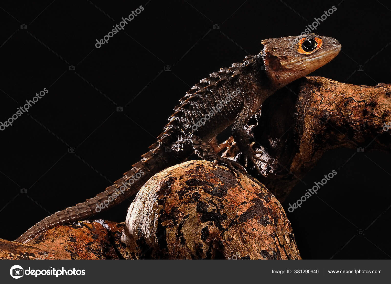Closeup Red Eyed Crocodile Skink Tribolonotus Gracilis Isolated On Black Background Stock Photo Adobe Stock